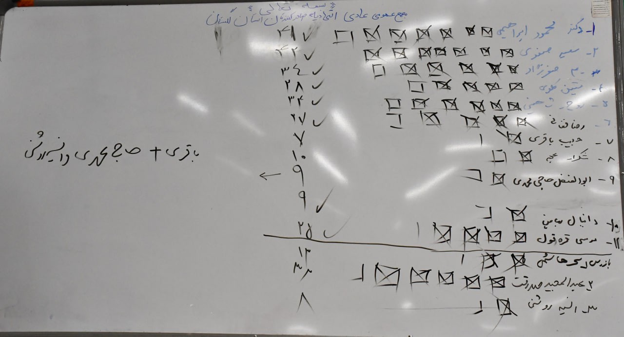 همچنین شکراله عجم و دانیال بهامین بهعنوان اعضای علیالبدل و عبدالمجید صداقت بهعنوان بازرس اصلی انجمن برگزیده شدند.