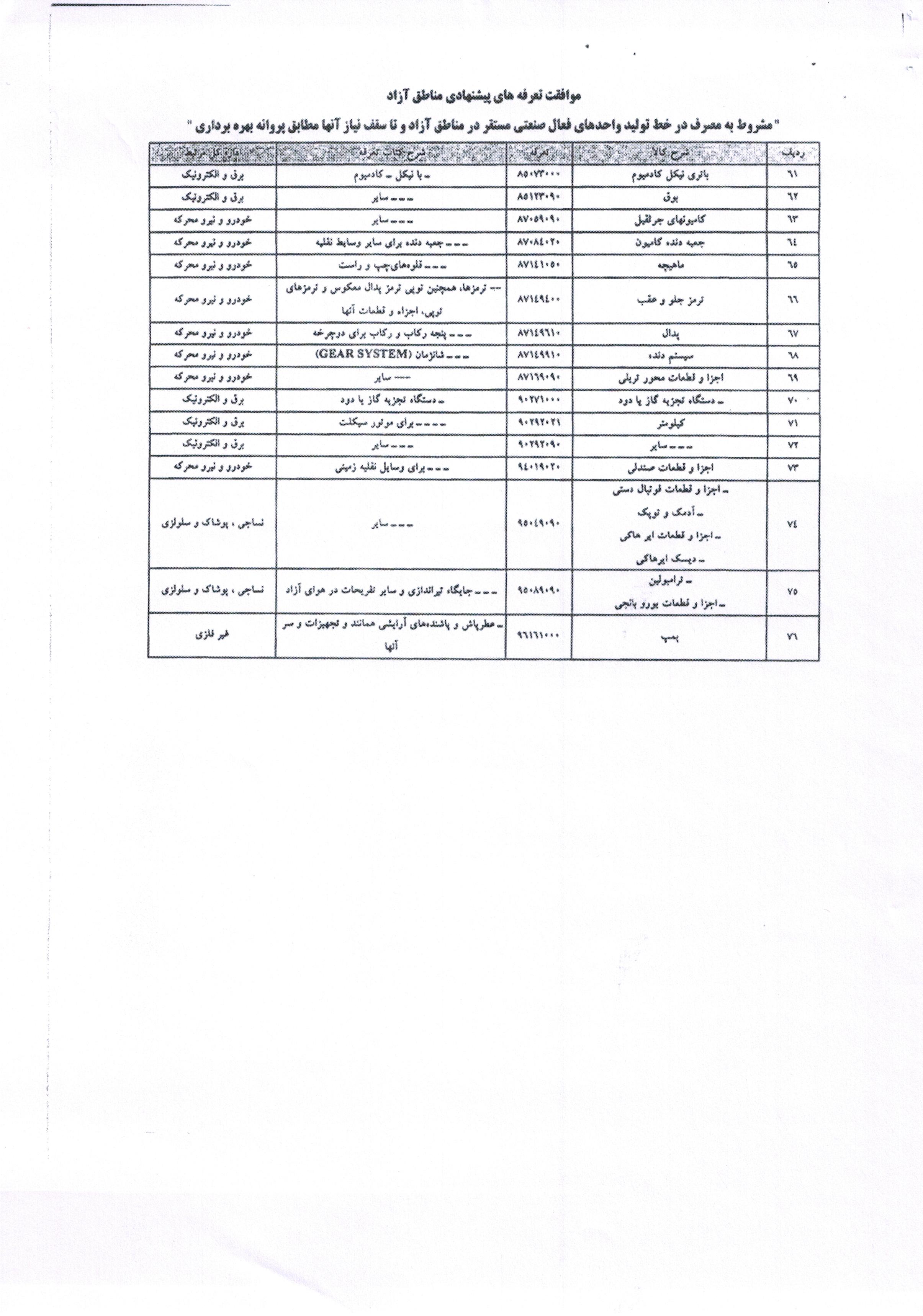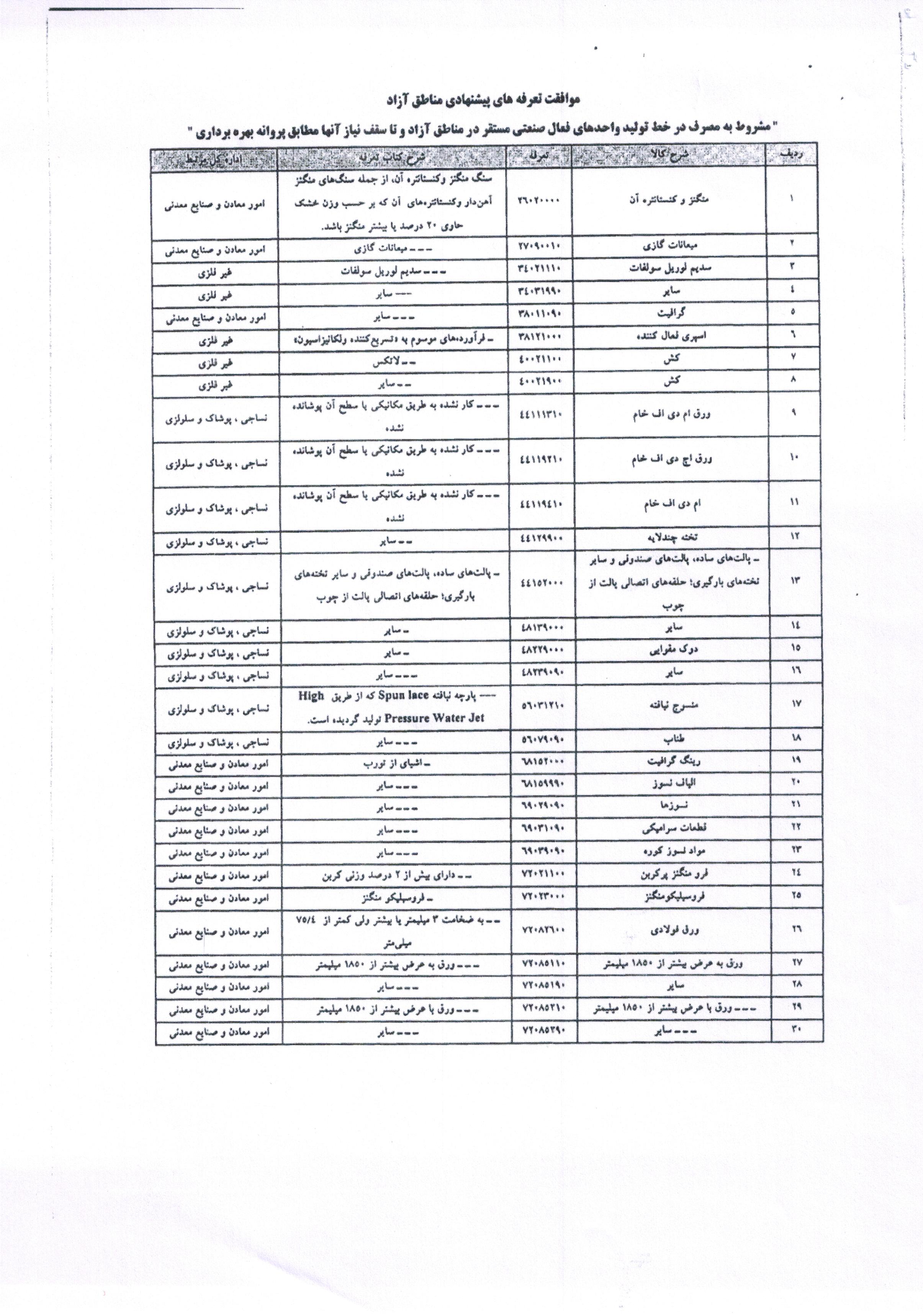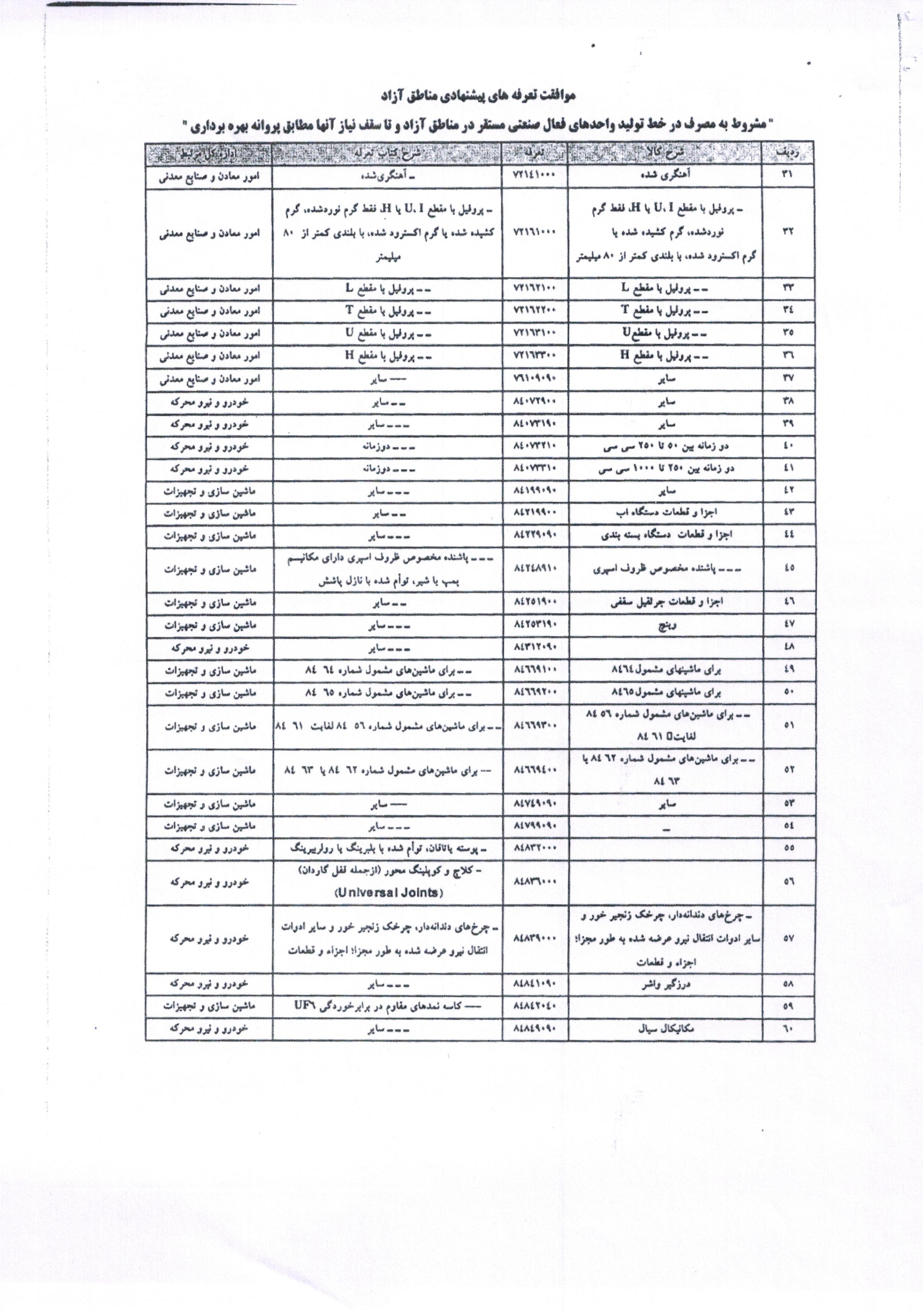 ابلاغ 76 قلم تعرفه مواد اولیه تولیدی و واسطه ای ماشین آلات و تجهیزات به مناطق آزاد و ویژه