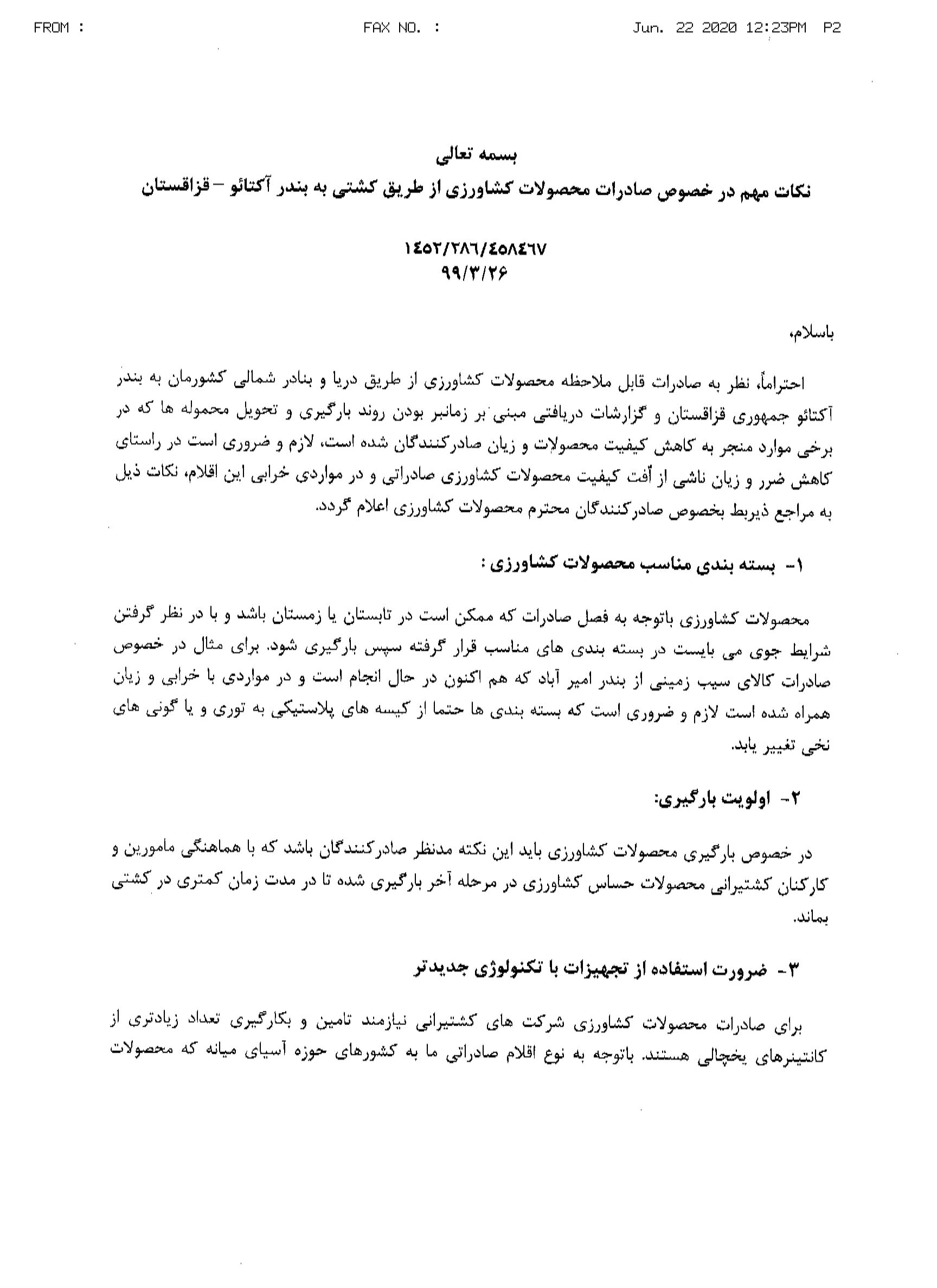 نکات مهم صادرات محصولات کشاورزی با کشتی به آکتائو قزاقستان
